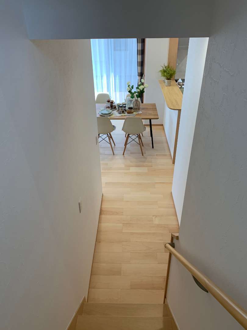 階段はリビング階段で、ご家族のコミュニケーションを取りやすく、家全体の冷暖房効果も上がります。