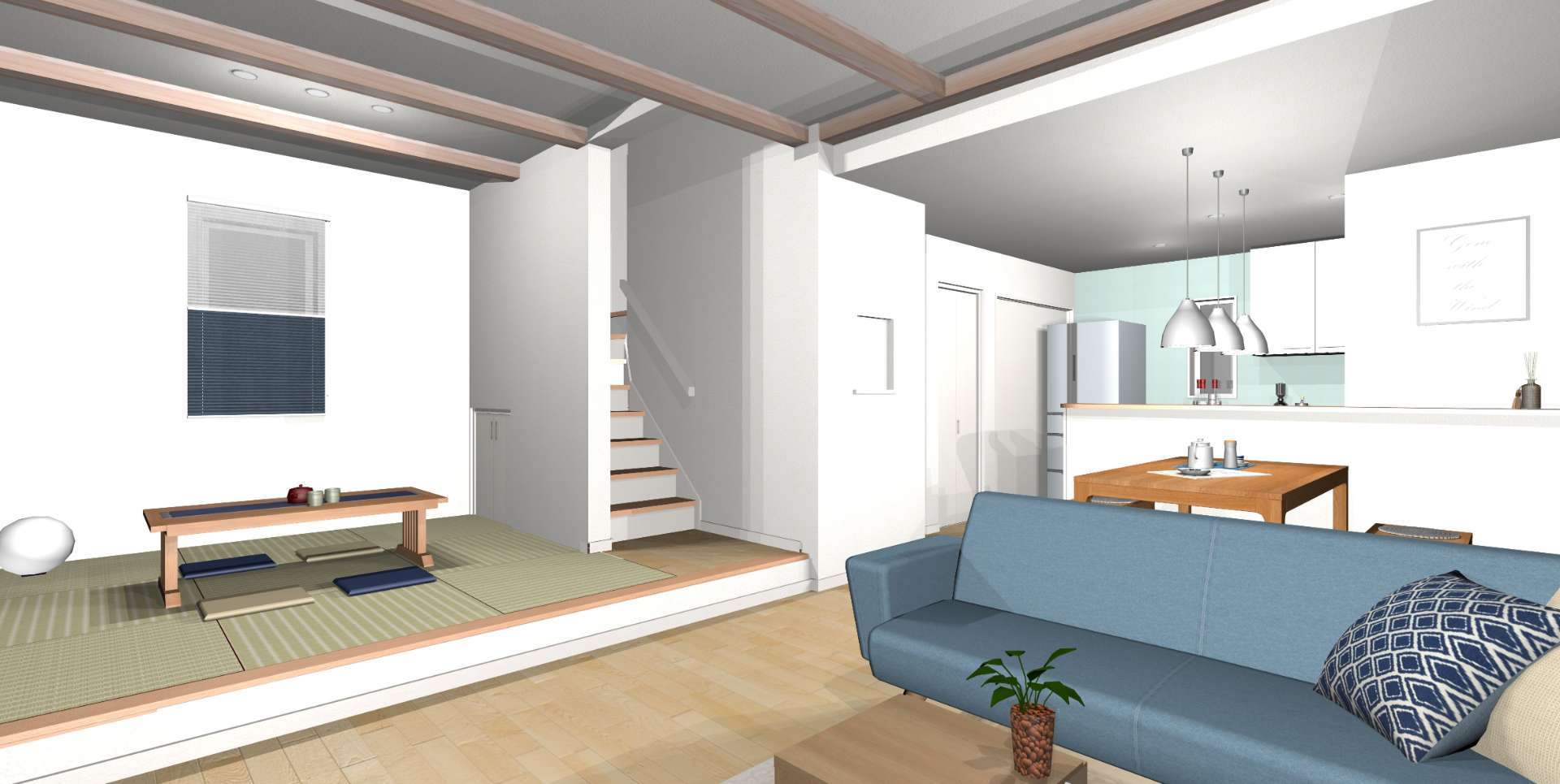 リビングと小上がりの和室には、化粧梁がアクセントになっています♪