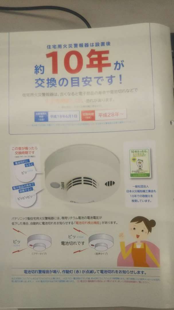 10年以上前に設置した警報器は電池切れや部品の寿命等で
