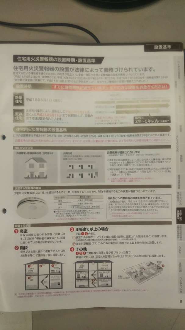 平成18年から消防法が改正されて火災警報器を取付る事が