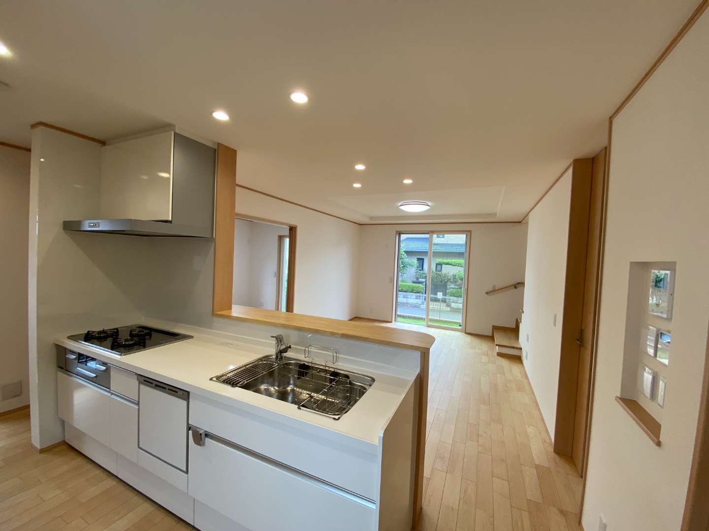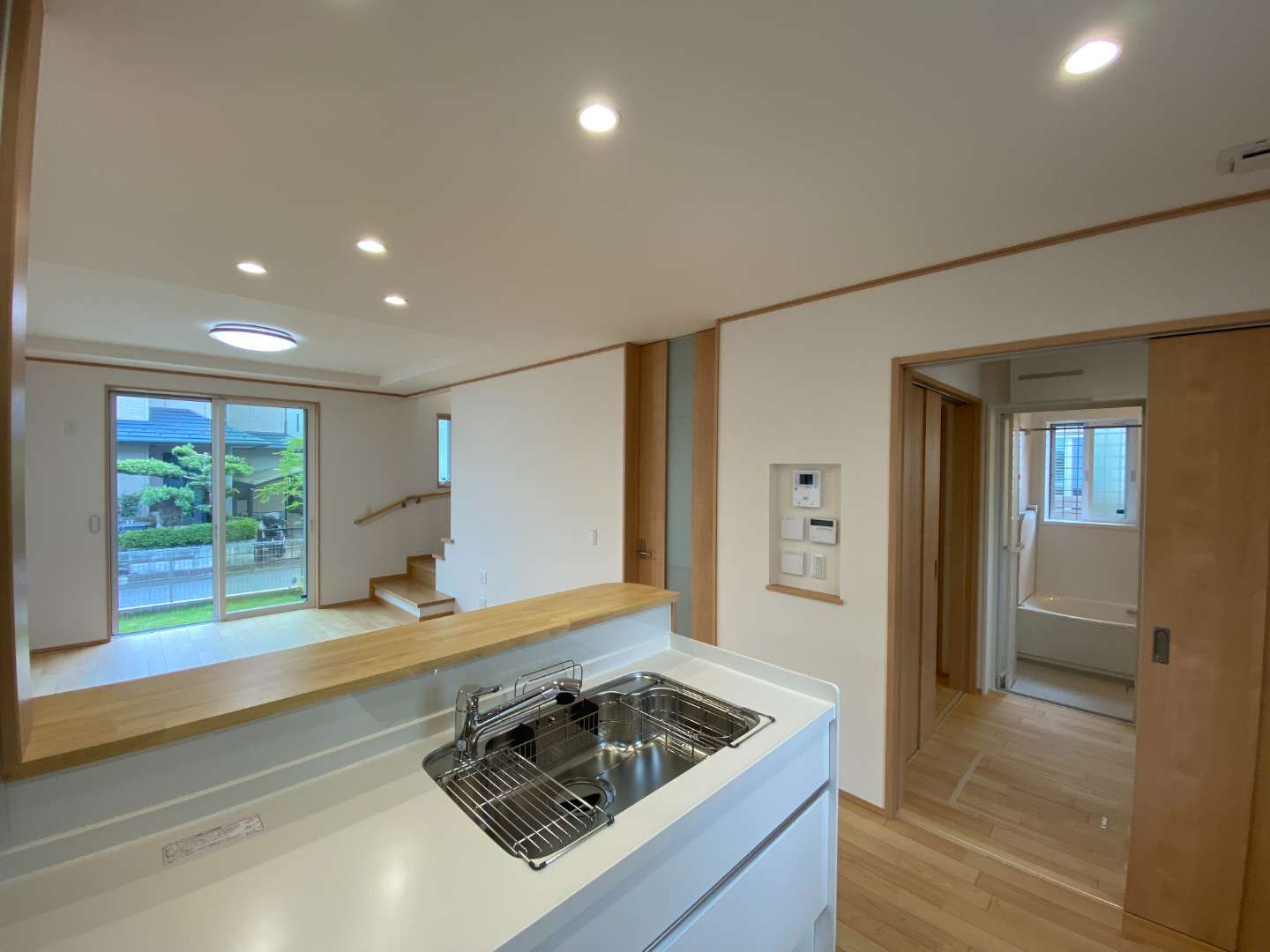 リビング階段にキッチンから洗面室へ、洗面室からホールへと2WAYになってます。