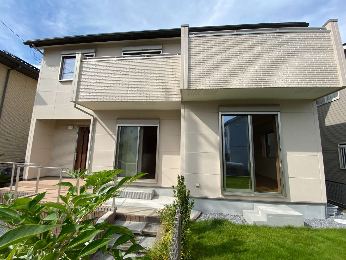 アプローチも玄関も広くゆとりある空間です。敷地が広いとこれだけ自由度があります。