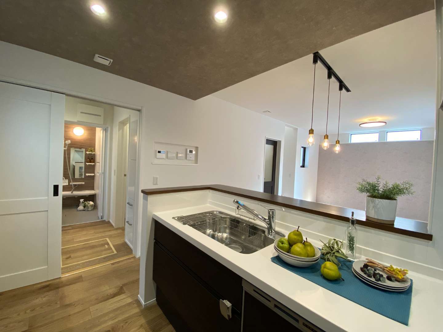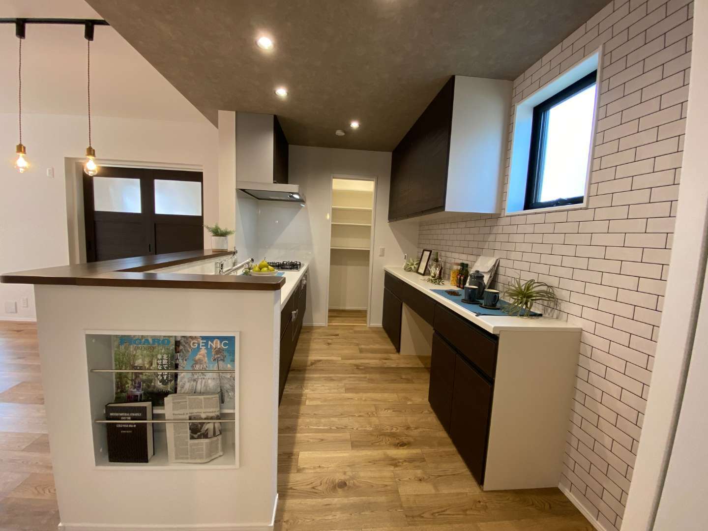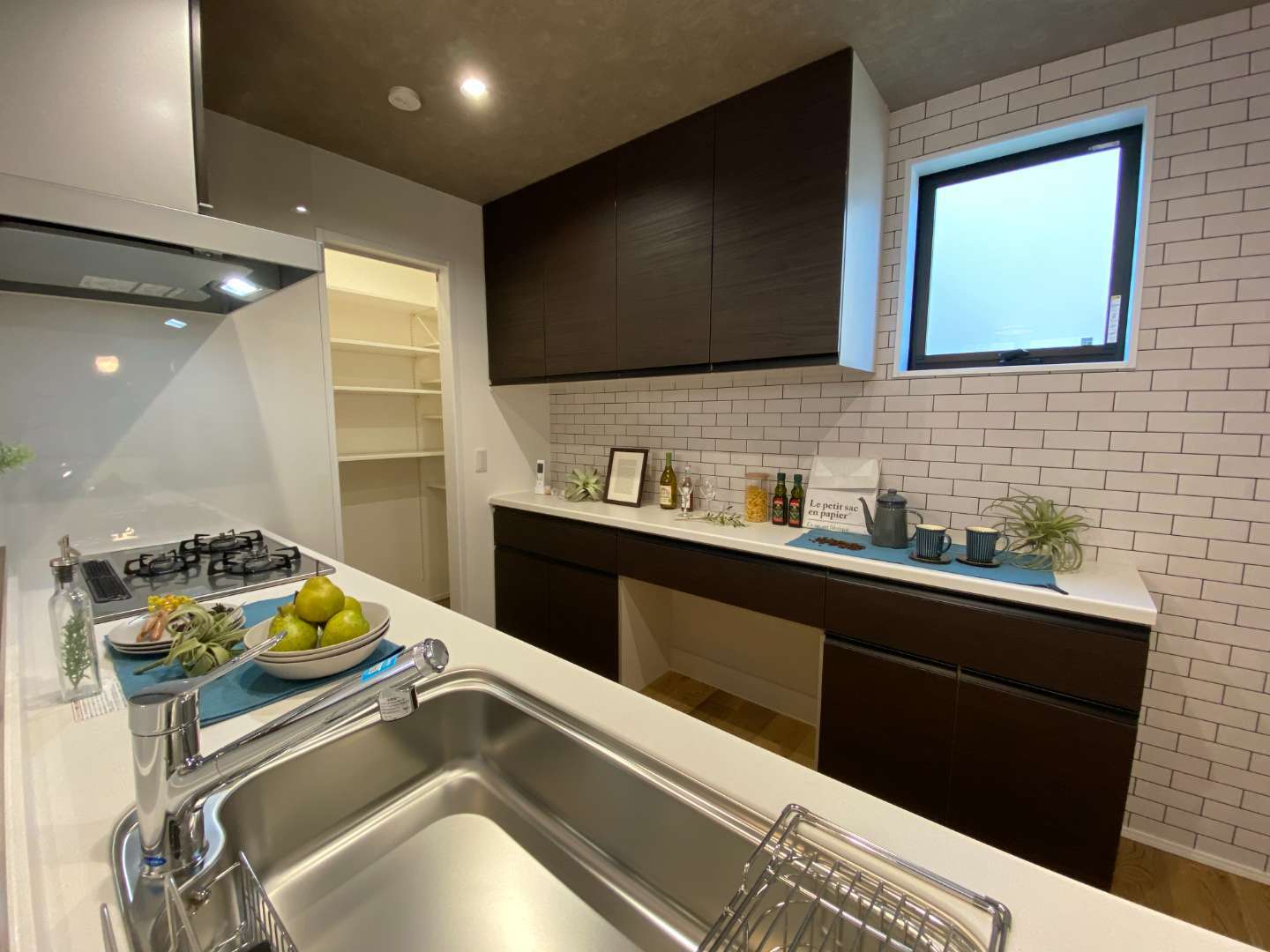 8号棟のキッチンには果物を。マガジンラックもあるので、雑誌や新聞なども。