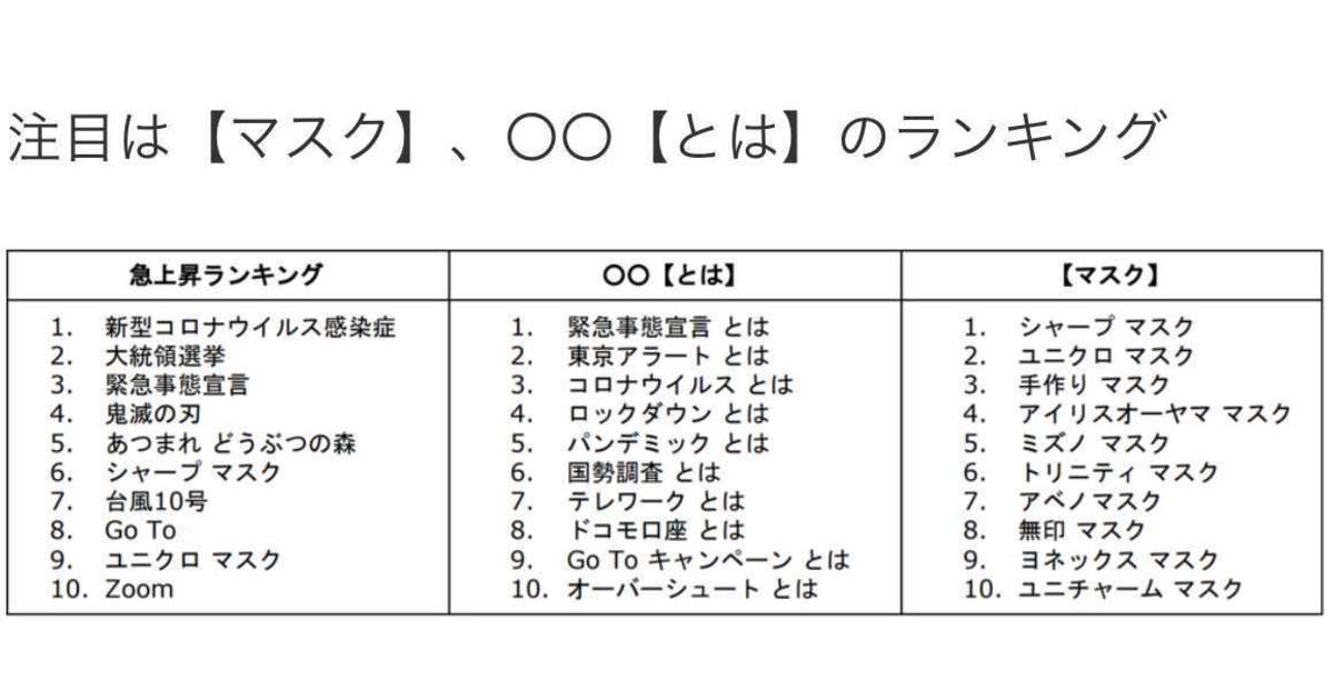 先日、Google様から「2020年Google検索ランキング」が発表されましたね。