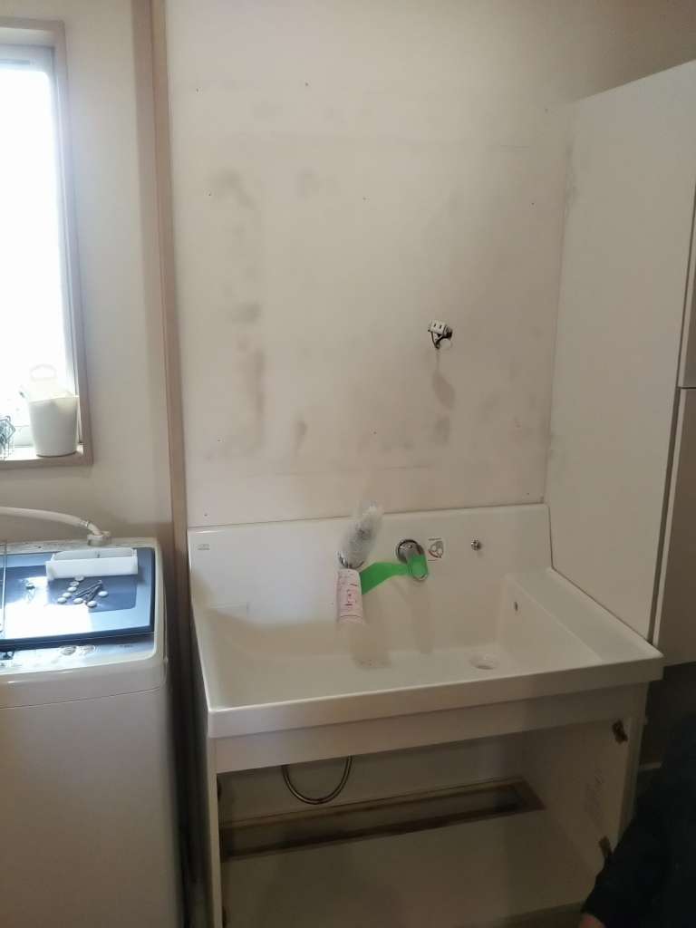 今回のホースは、ミラーキャビネットと洗面台を取り外さないと、交換が出来ないタイプです。
