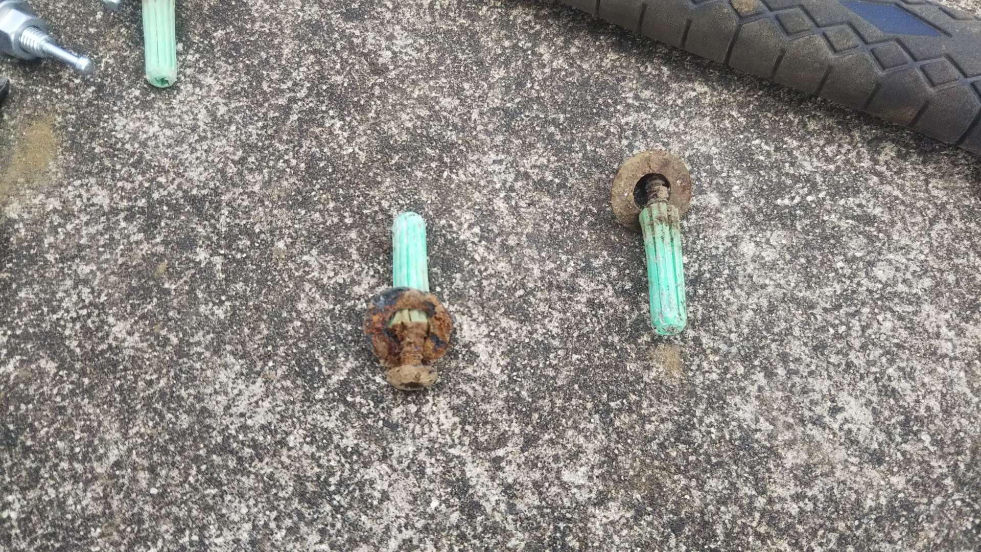 ネジ山が錆びついていて外すのが大変でした!シンボル灯1本に3本のアンカー使っています。4本のシンボル灯がグラグラになっていたので12本も打ち直しました!