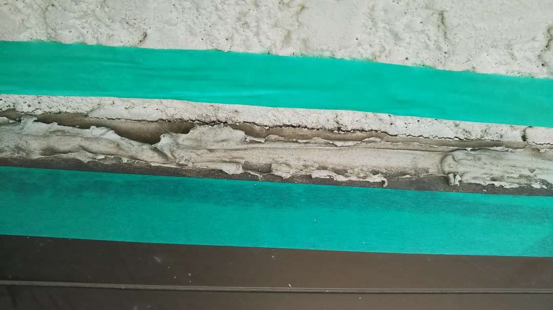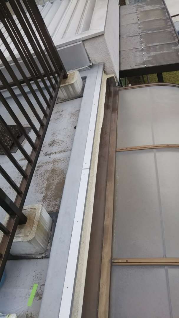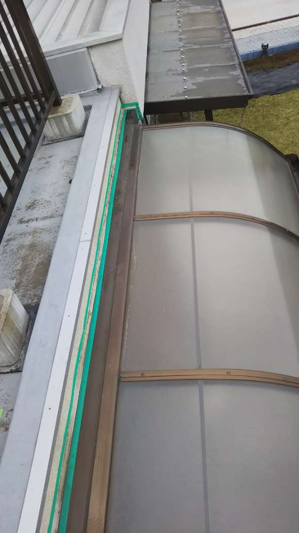 既存の外壁と後付けテラスの間から雨漏りのため、