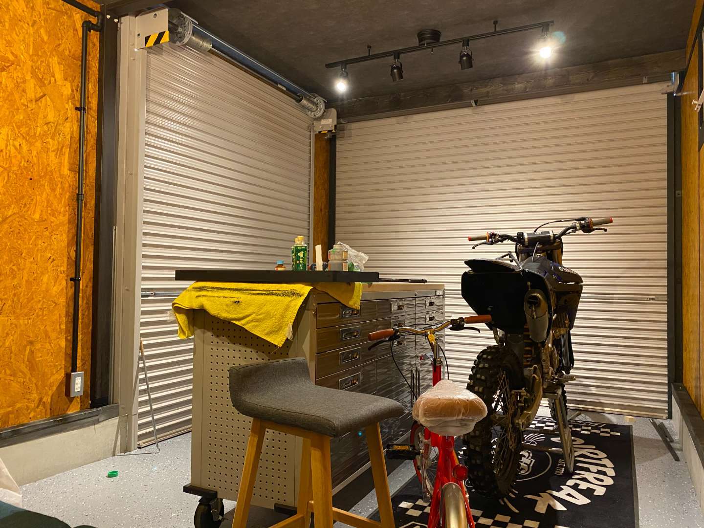 今後は壁に色々飾り付けをするようなので、もっとかっこいいガレージに仕上がることと思います。