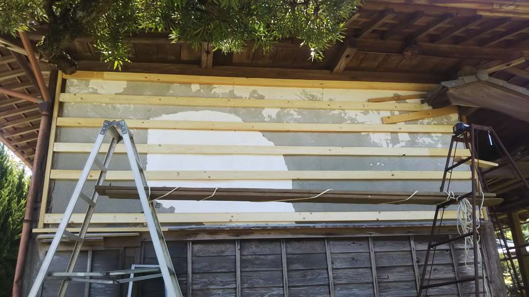 壁の漆喰が剥がれてしまいましたので、修繕。