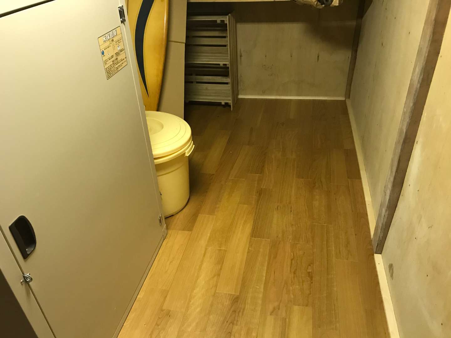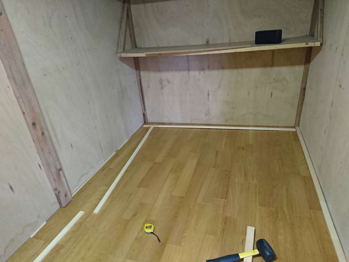 初めてにしてはキレイに張れました、壁と床の境目に巾木を取り付けて作業完了