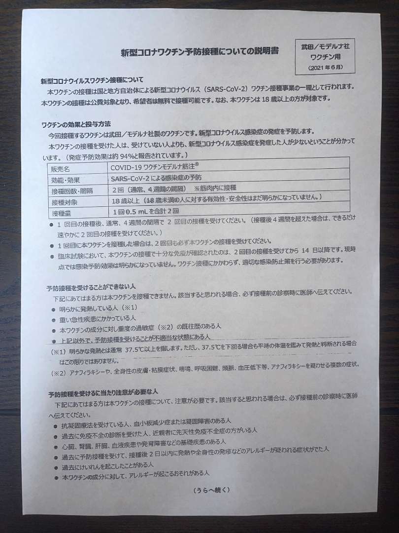 先日、新型コロナワクチン予防接種の1回目を受けてきました。