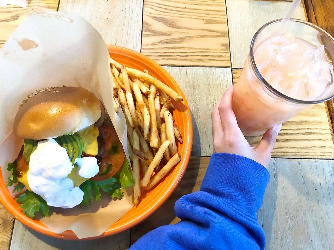 ハワイアンのご飯が楽しめて、いつもガーリックシュリンプを食べるのですが、今回はアボカドバーガーにしてみました。