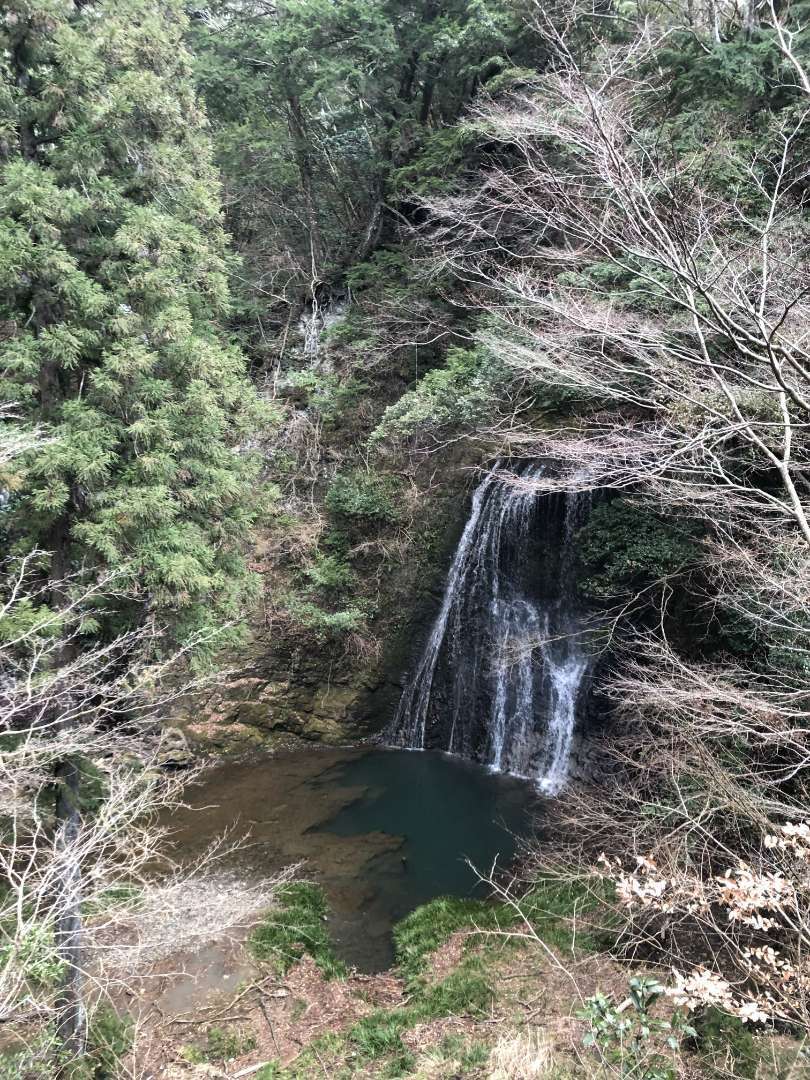 そして山の中に入っていくと、いきなりどーんと四方木不動滝が見えてきます。
