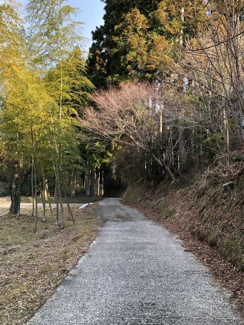 山道を車で走り近くまで行けるのですが、道幅が狭くすれ違いができないとのことで、山道に入る前に車を止め歩いてい向かいました。