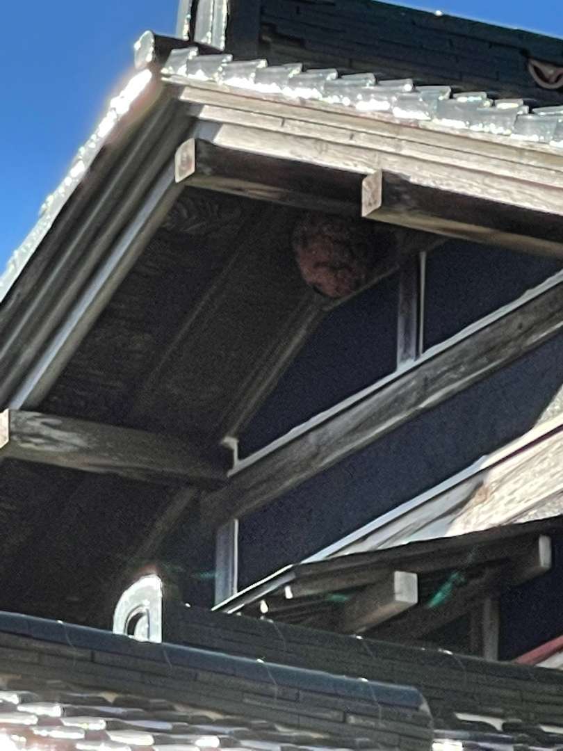 実家の2階の屋根の軒下に、かなりデカいスズメバチの巣が