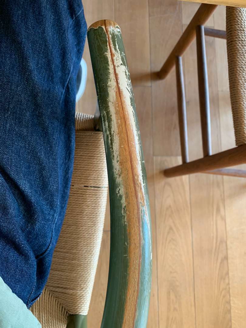 座った椅子の肘かけ部分の写真です⇩