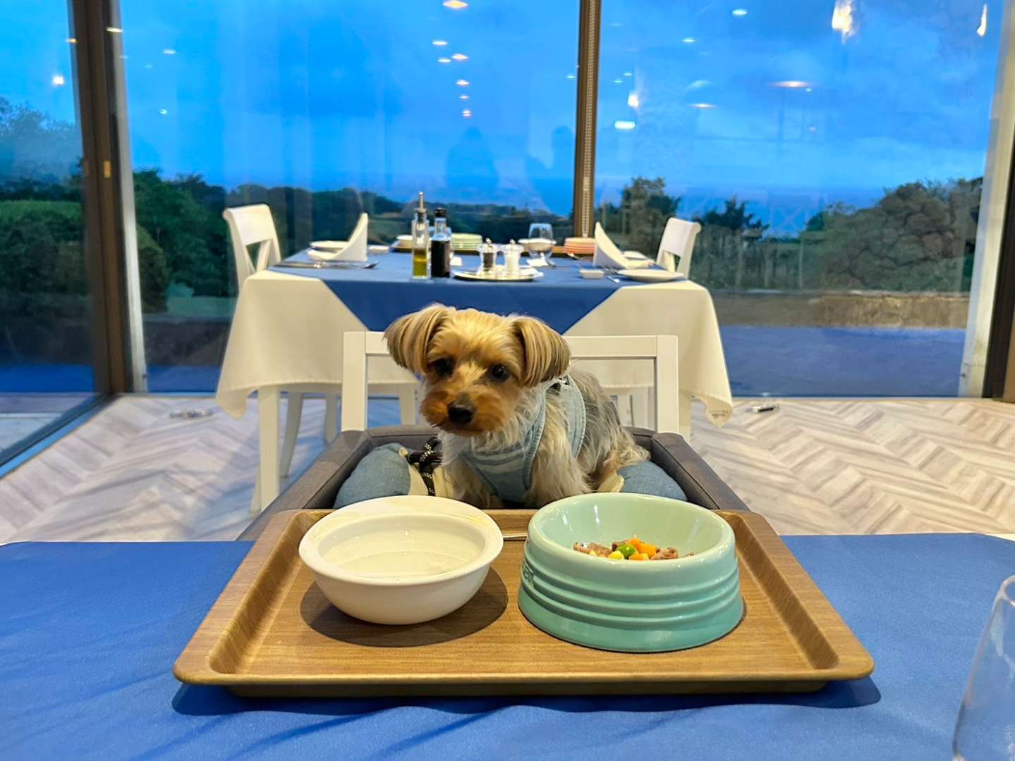レストランにつくと、ちゃんとわんちゃん用の席も用意されてる!とてもありがたい!