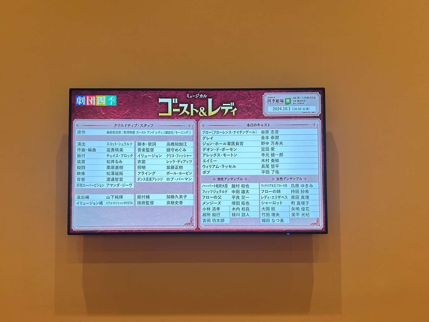 先日劇団四季のゴースト&レディというミュージカルを観に行ってきました!