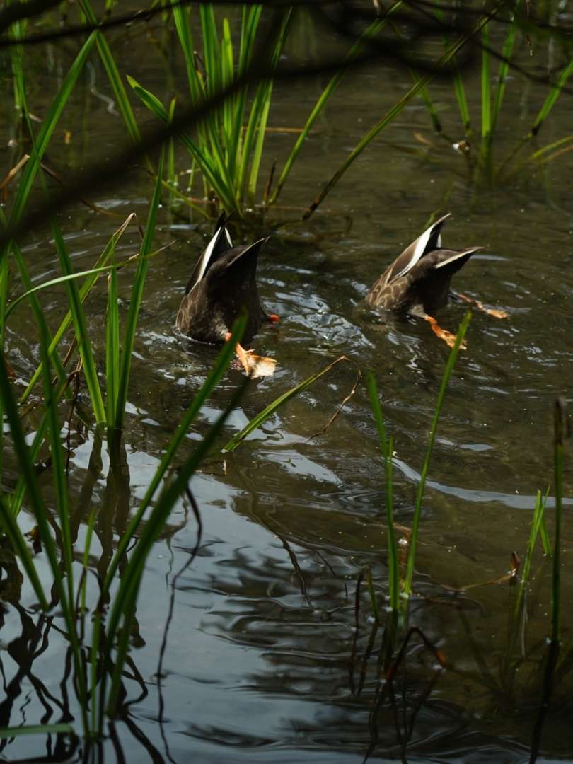 この行動について調べてみると、なんとカモにも「水面採餌タイプ」と「潜水採餌タイプ」がいるようです。今回見たのは「水面採餌タイプ」。