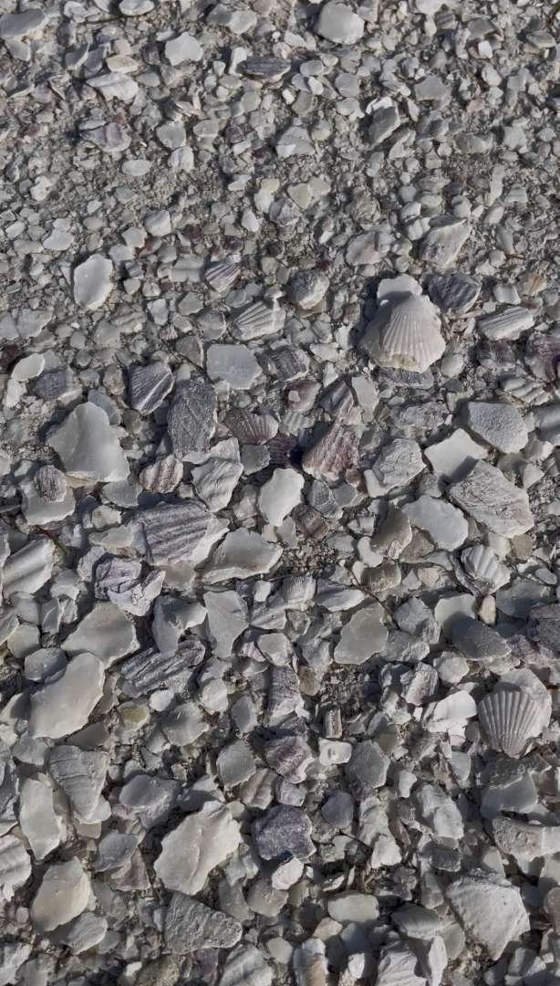 道が白く見えるのは、ホタテの貝殻が敷き詰められてるからなんだ~!