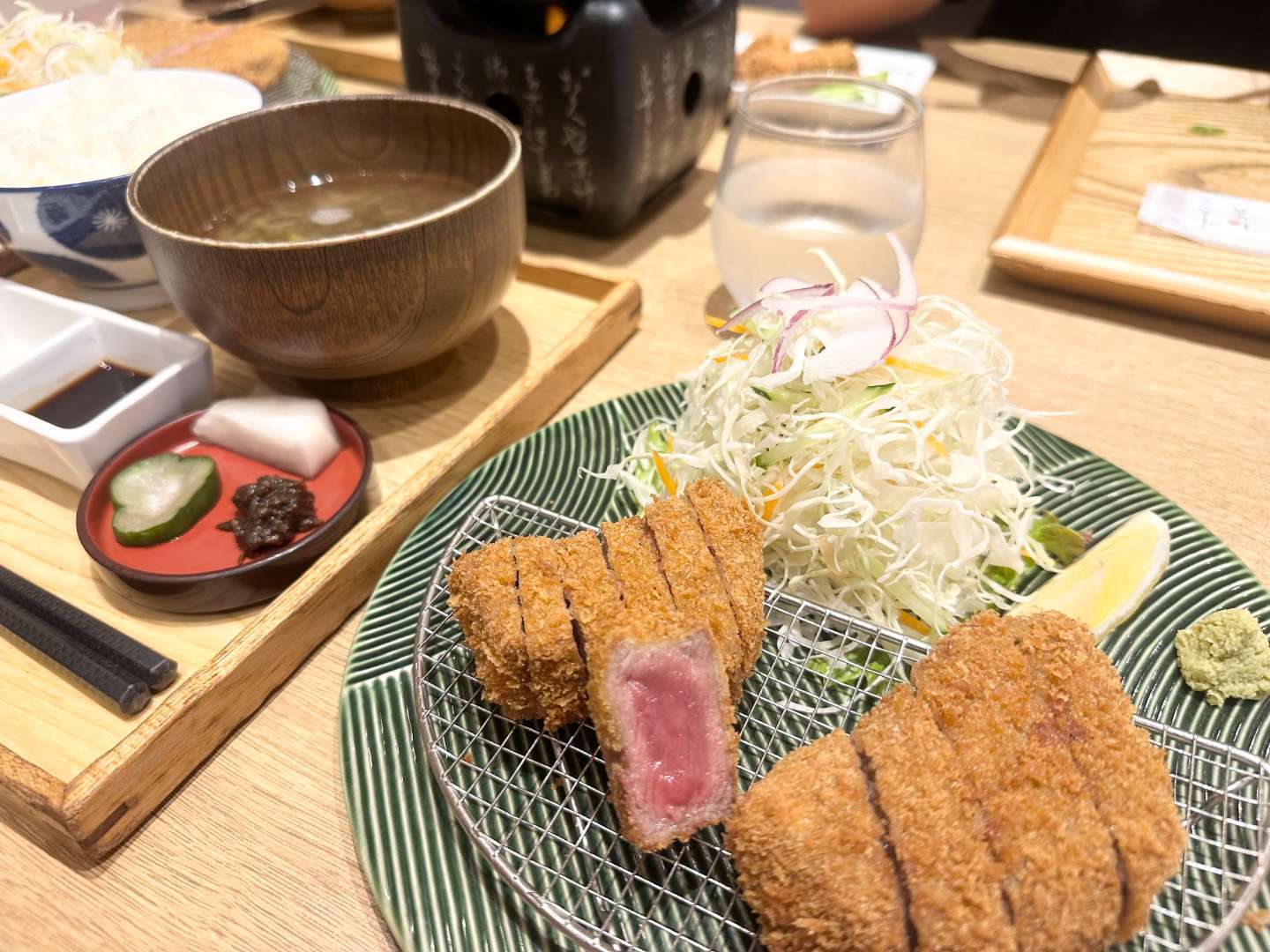 牛カツのお店で、ロース・サーロイン・ヒレから選ぶことが可能。