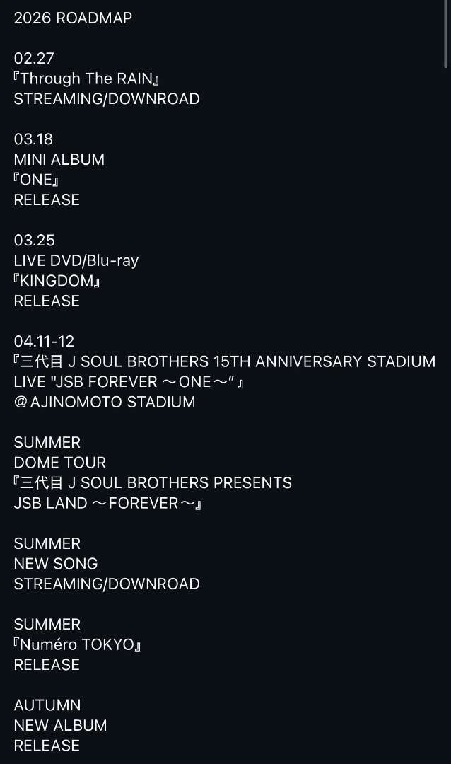 今回、『三代目 J SOUL BROTHERS 15TH ANNIVERSARY STADIUM LIVE“JSB FOREVER 〜ONE〜”』と題したスタジアム公演を4月11日、12日に東京 味の素スタジアムにて開催決定です!!!!