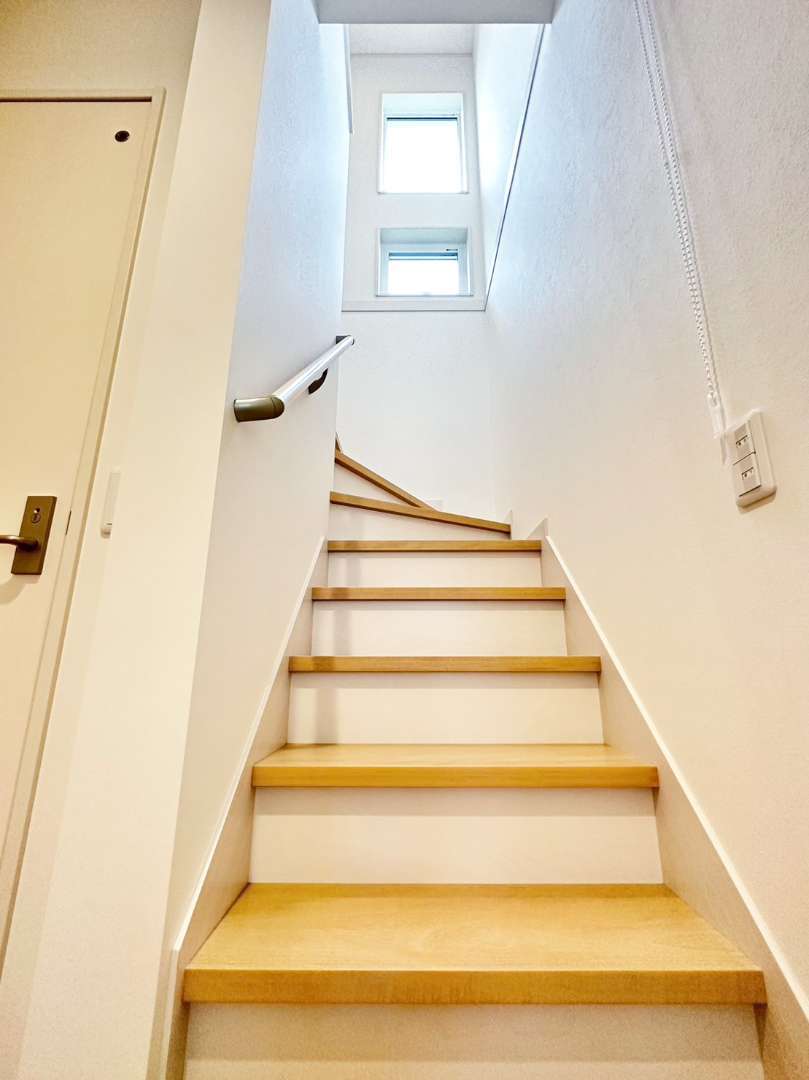 そこで担当営業より「戸建てでの階段の段数は13段や14段での家づくりも多いのですが、当社では15段を標準としていますよ」とお話があり、細かい点ではありますが、今後何十年と住んでいく中で15段階段により足腰への負担が軽減でき、こうした小さな心遣いがうれしい!と奥様が笑顔で話されている様子が印象的でした。