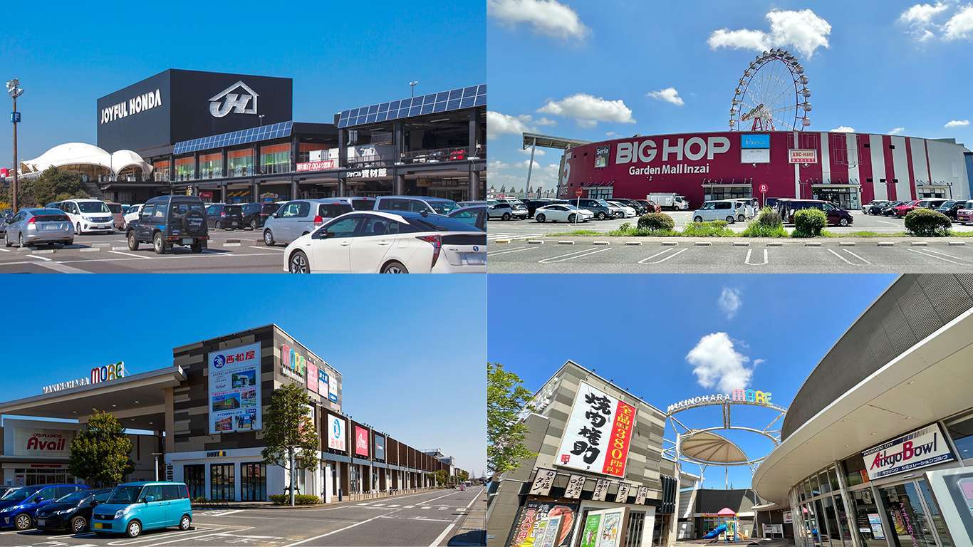 印西牧の原といえば、BIG HOPと牧の原モア、2つのショッピングモールが駅近隣にあることです。また、大型ホームセンターのジョイフル本田 千葉ニュータウン店も注目の商業施設。さらに家具店やスポーツ専門店など、国道464号線沿いを中心に、印西牧の原エリアには商業施設が充実しています。