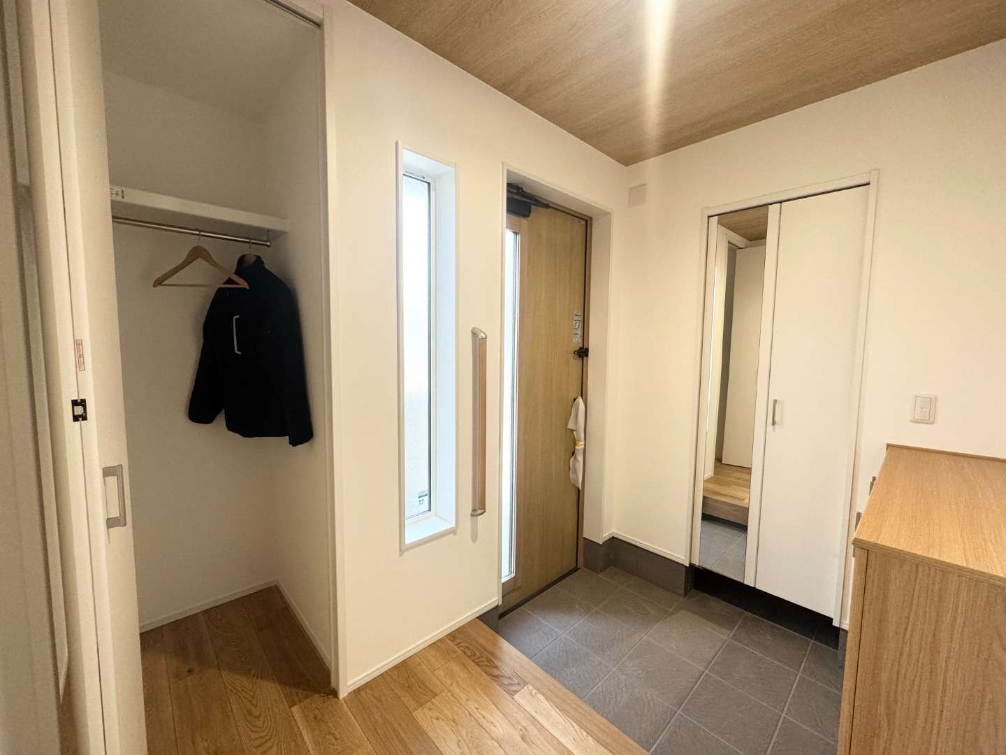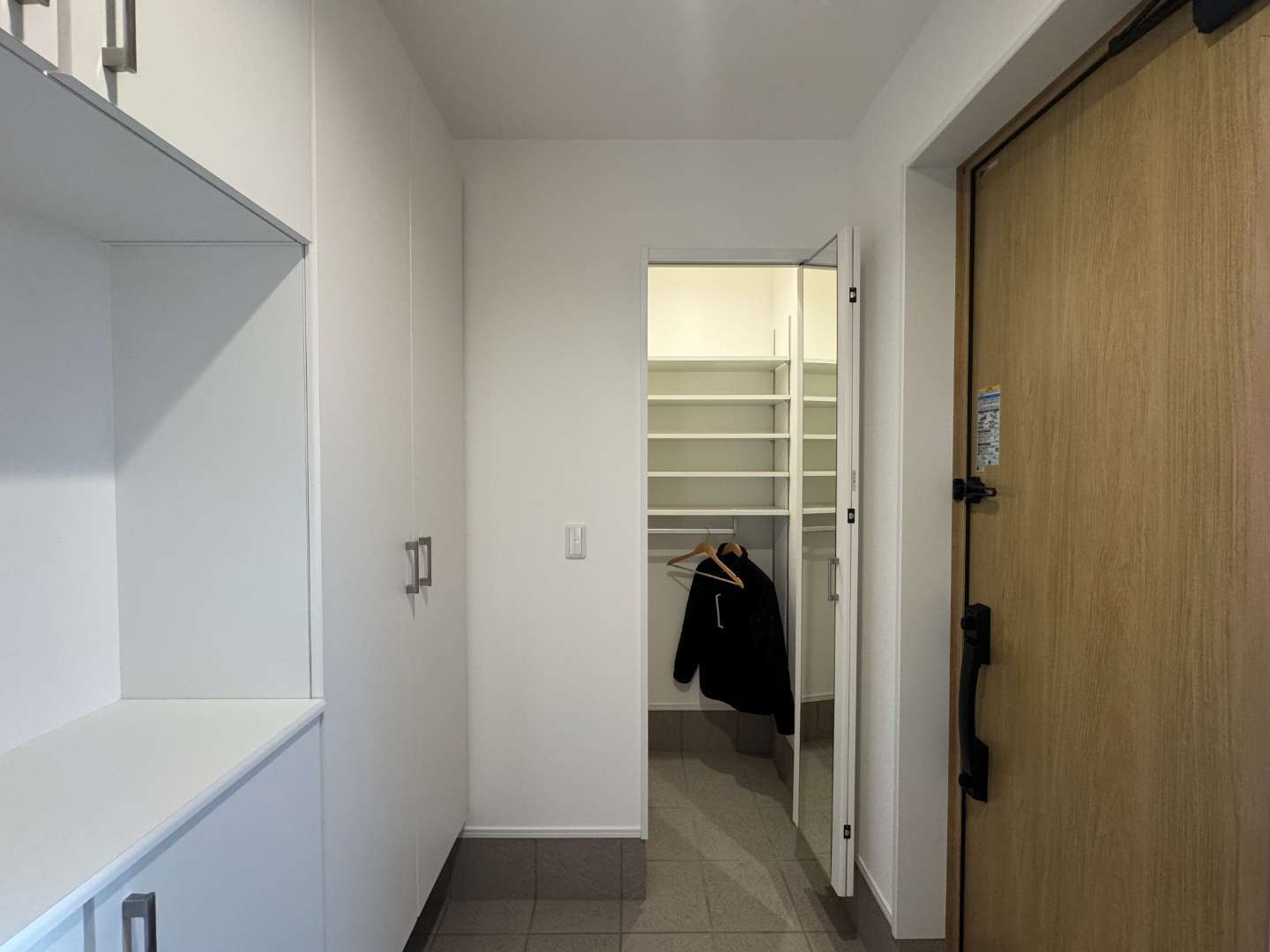 ここまでは主に、花粉や黄砂を玄関よりお家の中に入れない工夫をお話ししましたが、毎年花粉症に悩まされる方ですと、やはりこれだけでは不十分です。その際、外出の際に着用しているコートやジャケットを、玄関あるいはそれに準じるスペースで脱ぐということも大切になります。そしてこういう時に便利になるのが「玄関先の収納スペース」です。