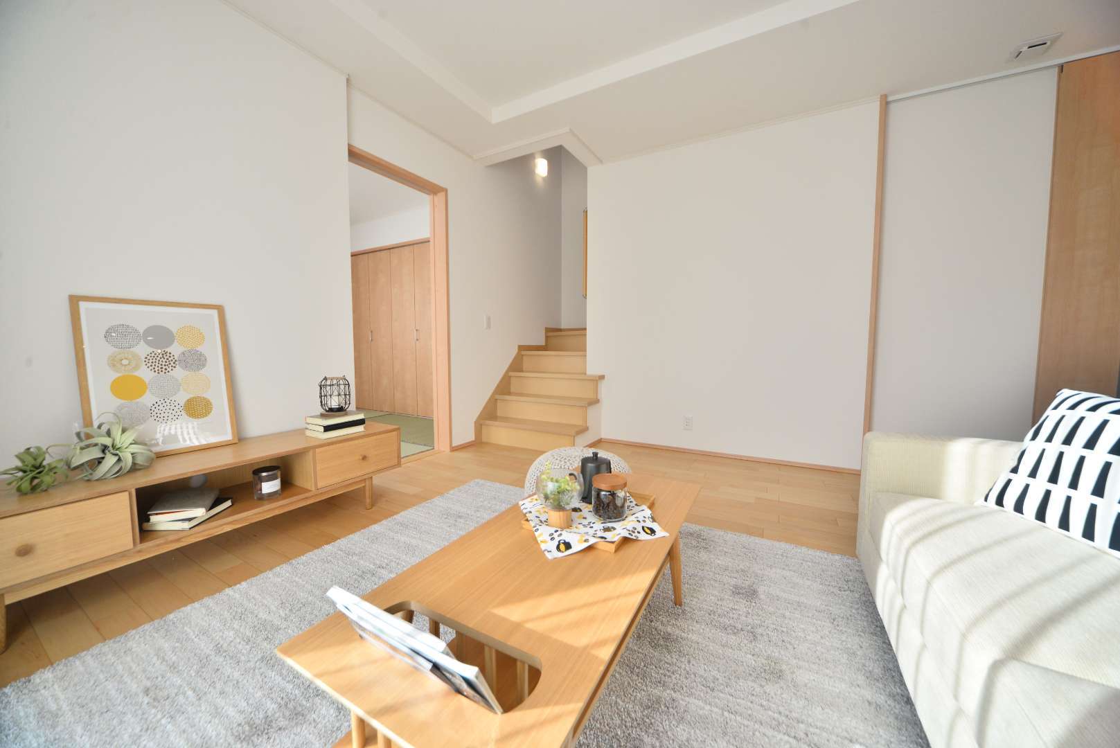 陽当り良好のリビング。ナチュラルテイストに北欧風の雰囲気をプラス。