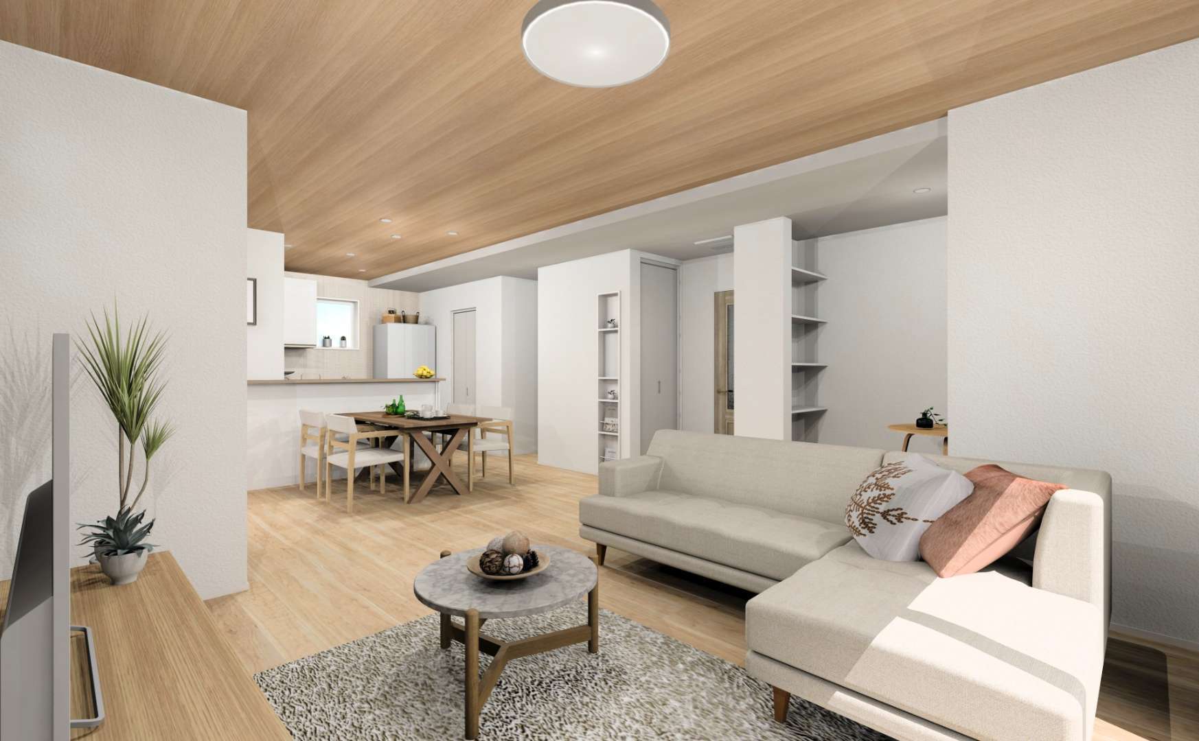 ゆったりしたリビング空間で、ご家族のリラックスタイムを☕