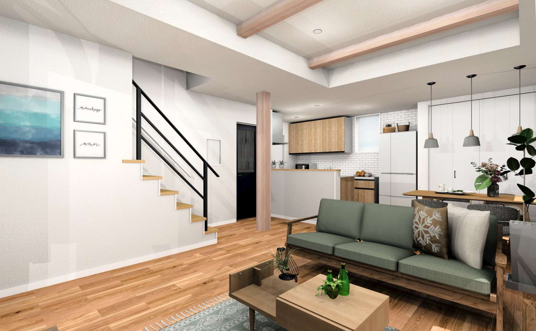 パースは、ナチュラル系の家具をセレクトしていますが、鉄脚のテーブルやソファーをチョイスすれば、さらにヴィンテージ感が増しますよ♪