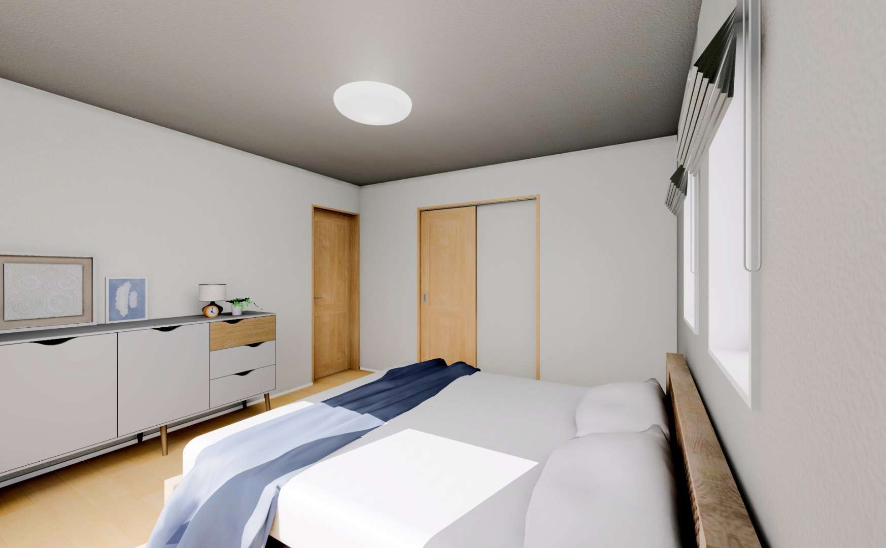 主寝室。引き戸の奥には、3帖のウォークインクローゼットがあり、