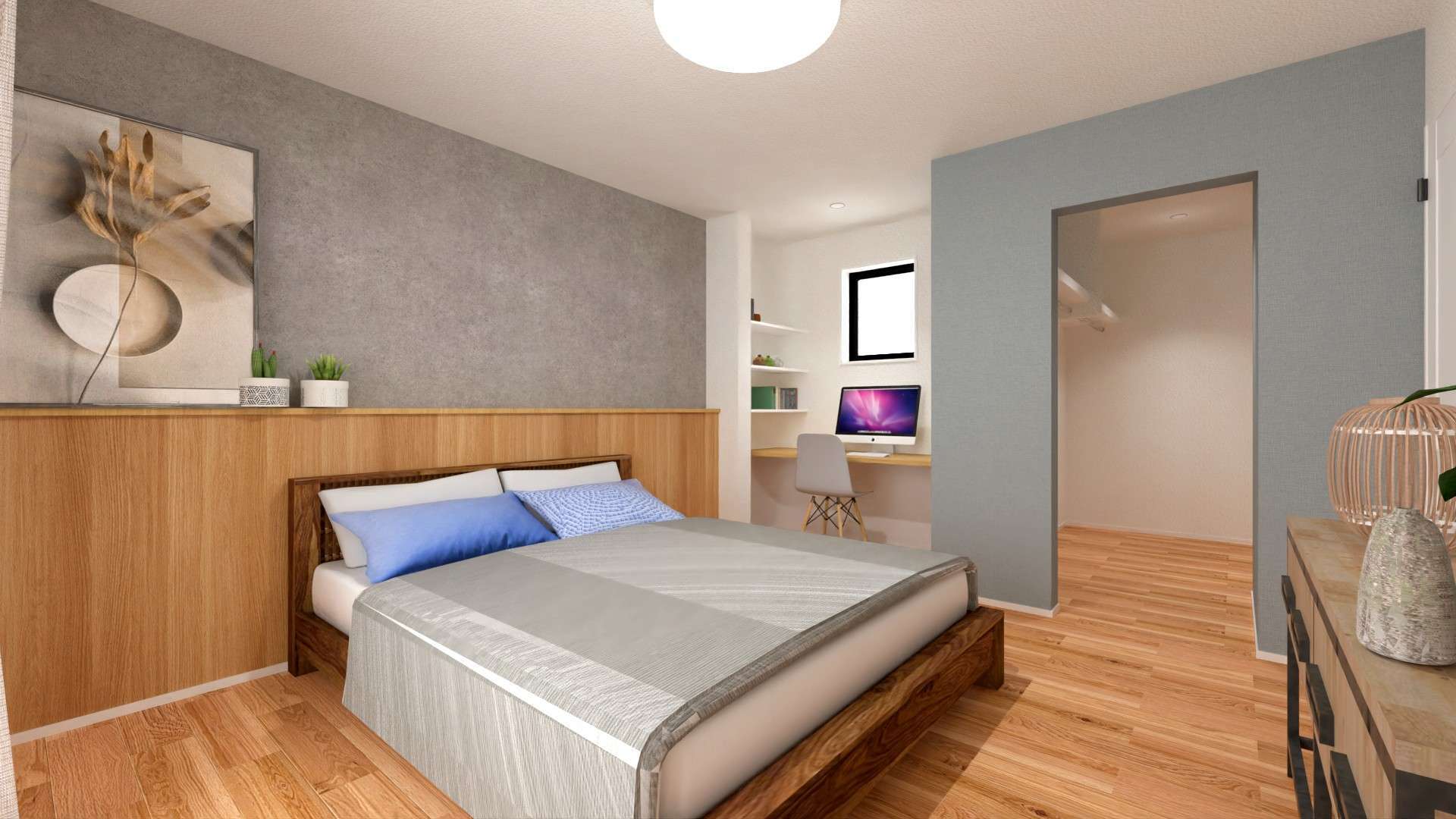 ワークスペースは、適度に集中できるよう、少しだけ独立感が感じられるような配置になっています。使いやすいオープンなWICも十分な広さです!