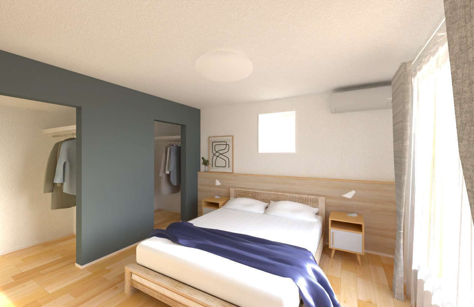 オープンクローゼットを2つ備えた主寝室。ご夫婦それぞれ専用のクローゼットとして使えるので、クローゼットスペースで喧嘩になることもありません(•̀ᴗ•́)و ̑̑ぐっ