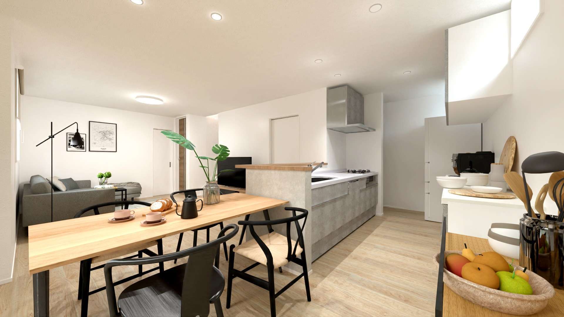 リビングとダイニングキッチンが程よく分かれているので、お食事の後には、ソファーでゆったりくつろぐことができ、心地よいメリハリのある暮らしを楽しめる間取りになっています。