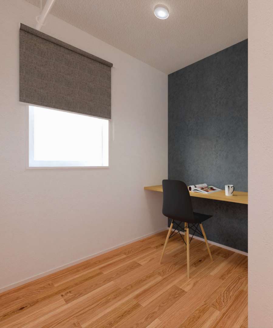 2階ホールの書斎スペース。扉のない半個室タイプなので、程よく仕事に集中できる空間になっています。