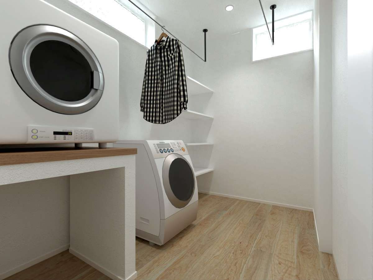 3帖の脱衣所兼ランドリースペースには、プライバシーに配慮しつつ光を取り込めるよう、上部にFIX窓を設置しました。洗濯、乾燥又は干すの流れがスムーズで、家事効率も👍です。