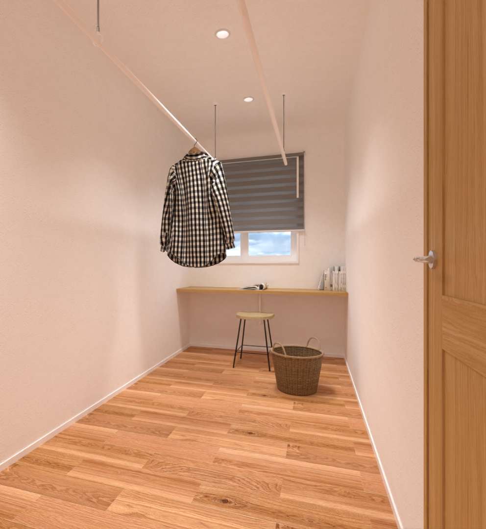 リビングからは見えにくい場所にあるため、来客時に洗濯物を干してあっても安心。