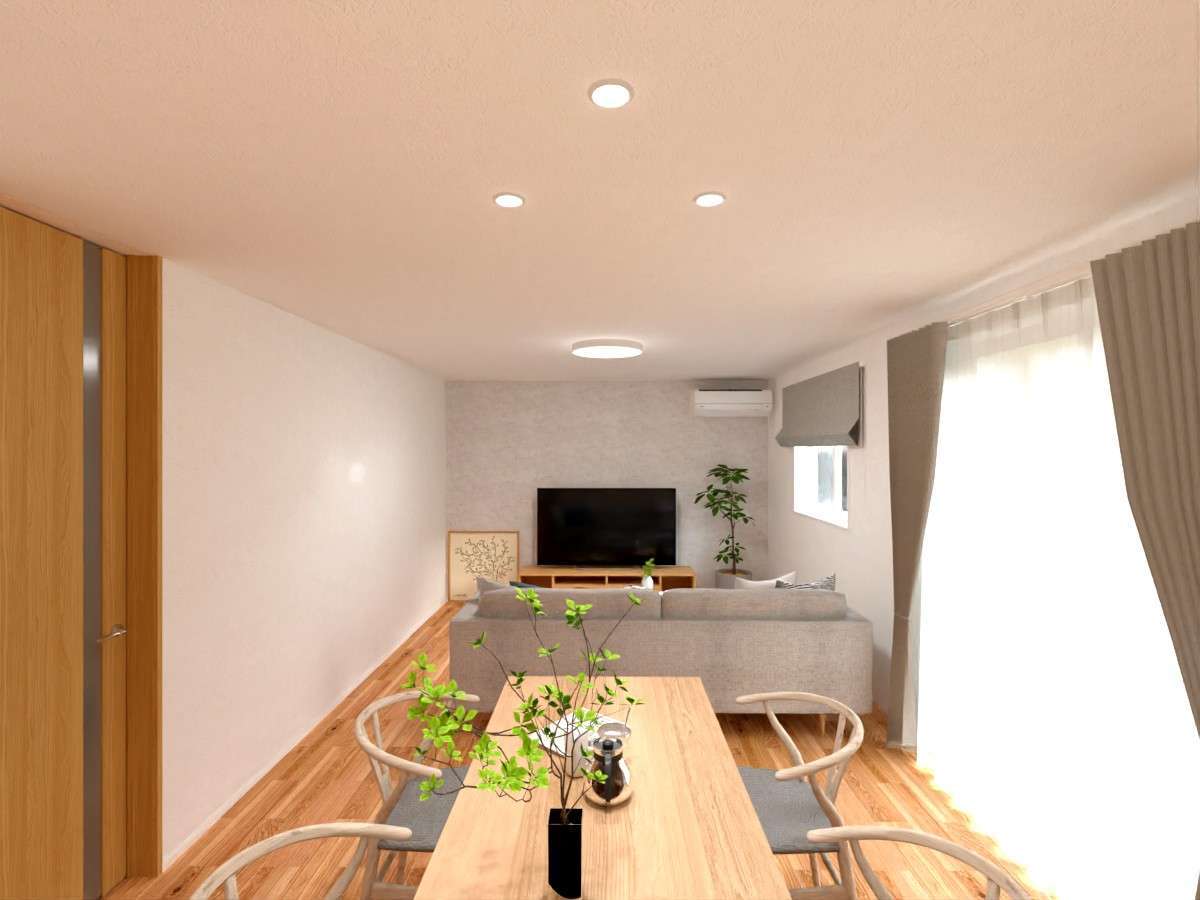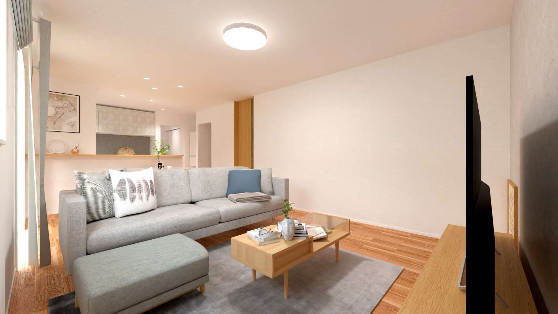 リビングのテレビ背面は一面壁になっていて、大きなテレビも設置しやすいレイアウトになっています。