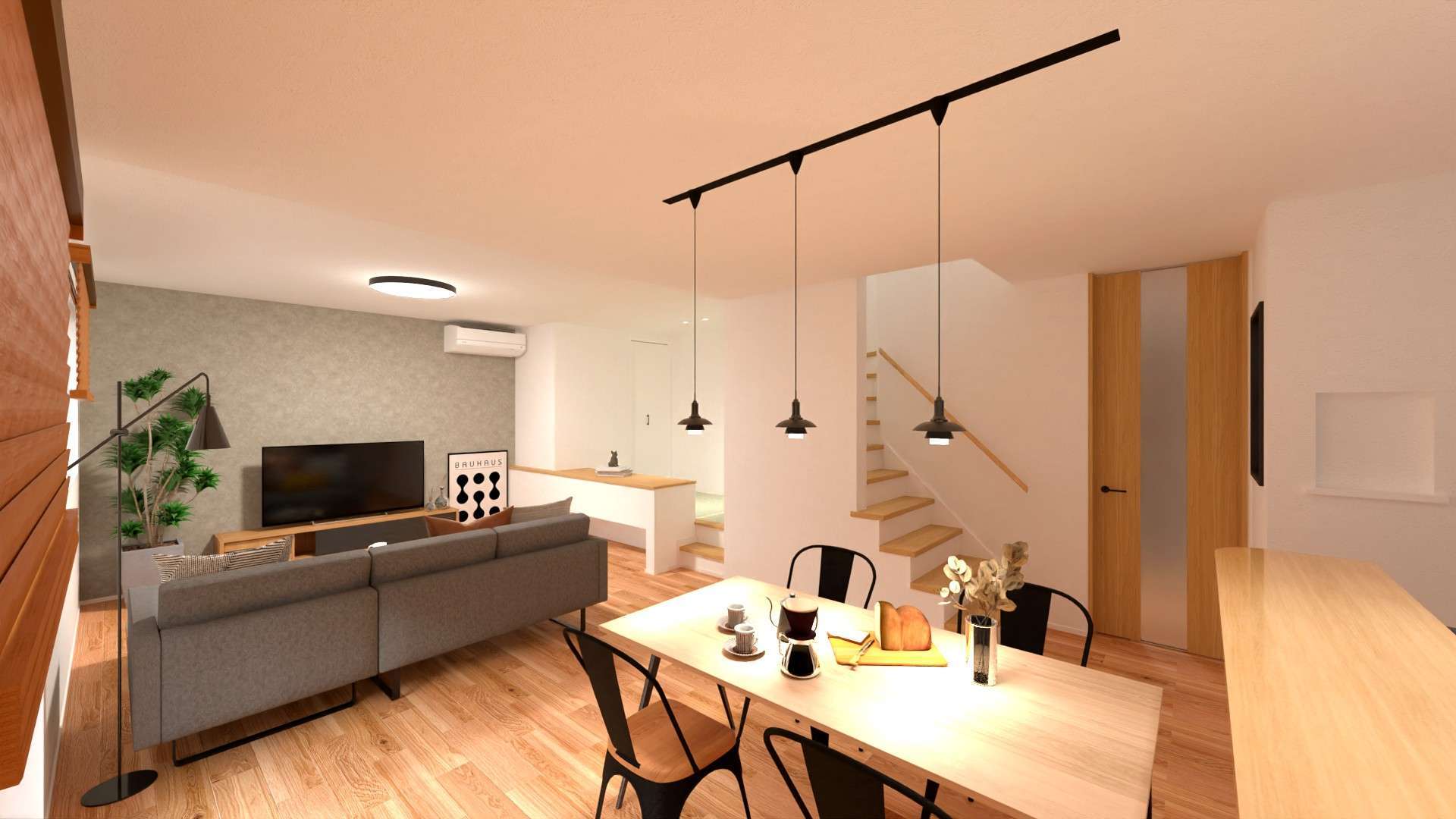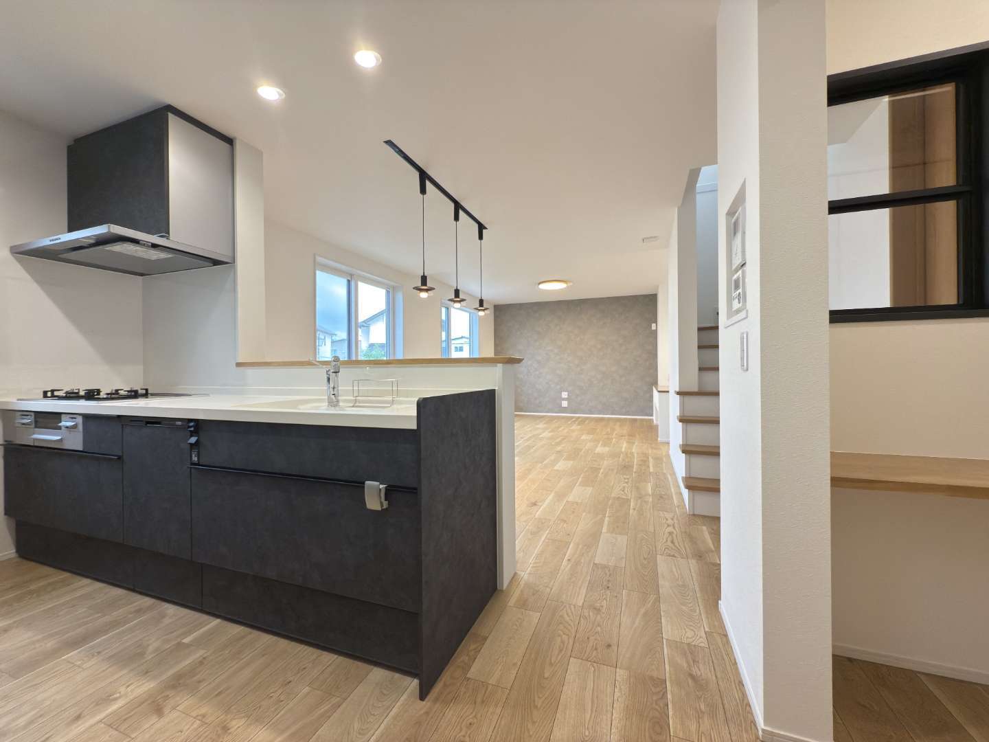 今回のお家は、大きなソファーを置いてもゆったりくつろげる広々リビングが魅力♪さらに、畳コーナーと書斎も備えた ”プラスワン...いやプラスツー” の嬉しい間取り♪ご家族それぞれの時間を楽しめるお家です😊キッチンから洗面所までが一直線につながる家事動線もポイント。忙しい毎日を、少しだけ心地よくしてくれそうです✨