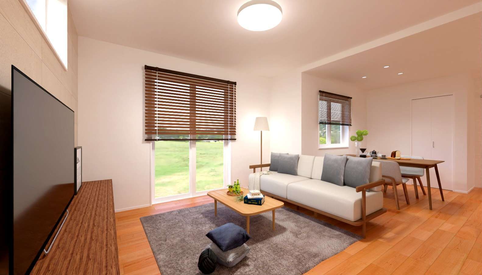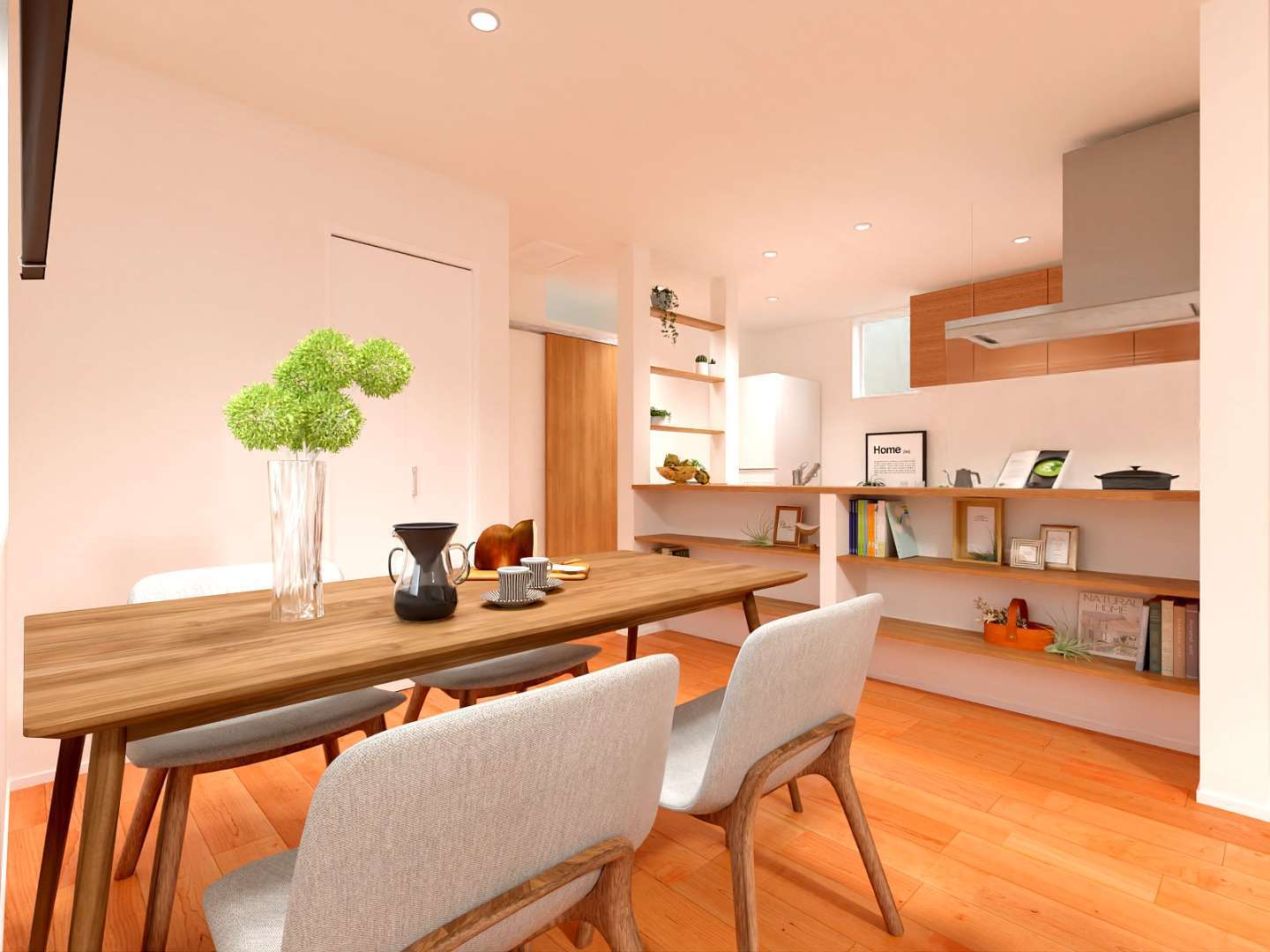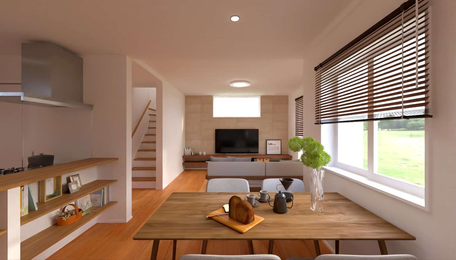 ダイニングからもテレビが見やすく、家族でゆったり過ごせる配置です。