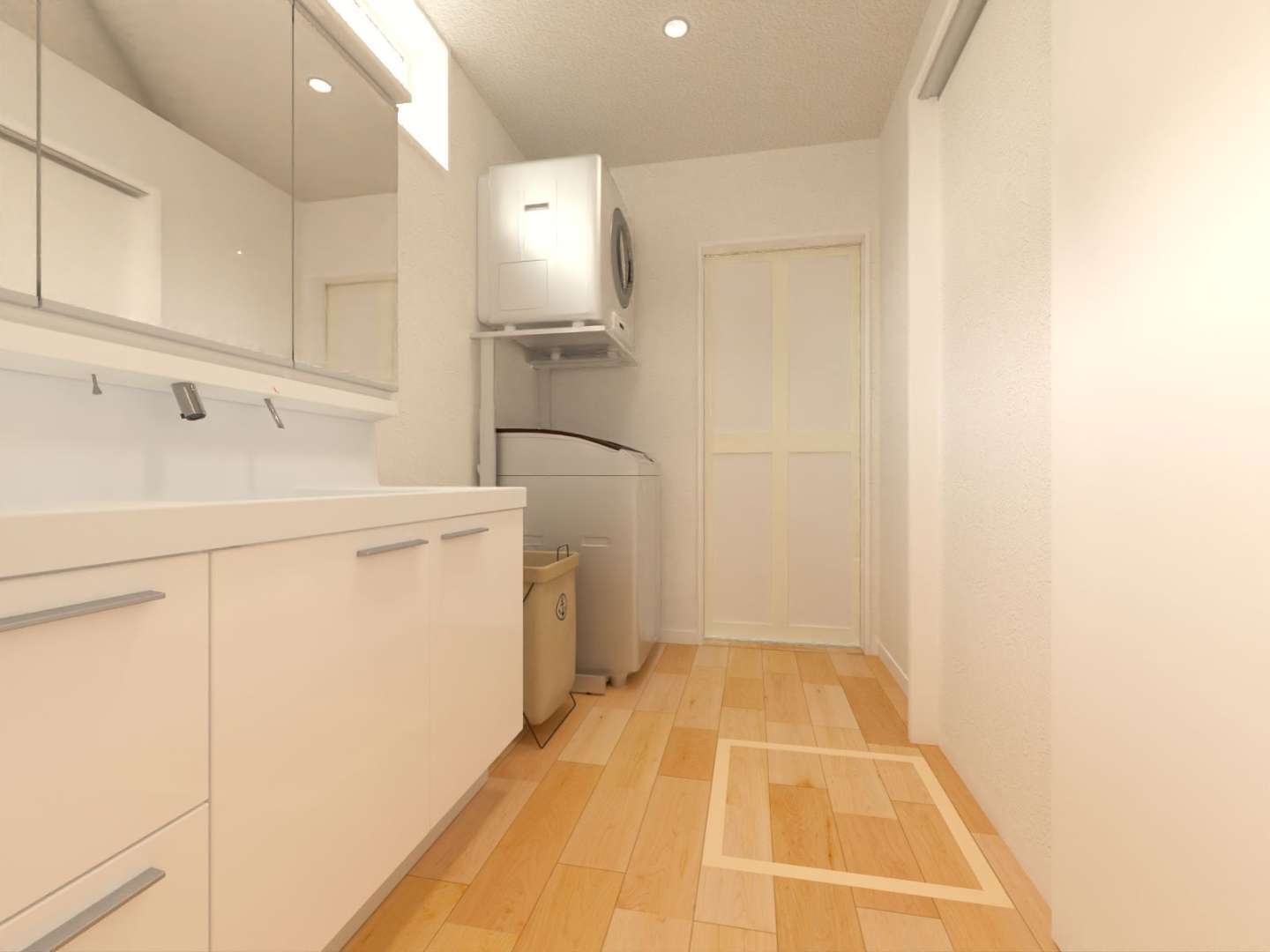 洗面脱衣室は3帖のゆったりサイズ。ガス乾燥機「乾太くん」を標準装備しており、毎日の洗濯も快適です。