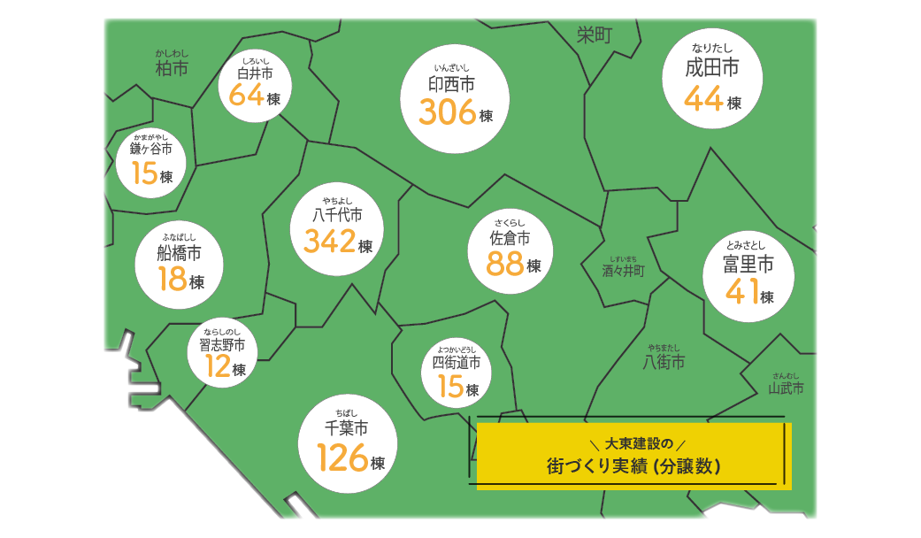 その思いから担当者一人一人が 仕入れ・造成・設計・販売・アフターメンテナンス と意識し過ごしやすい街を提供できるよう努めています。